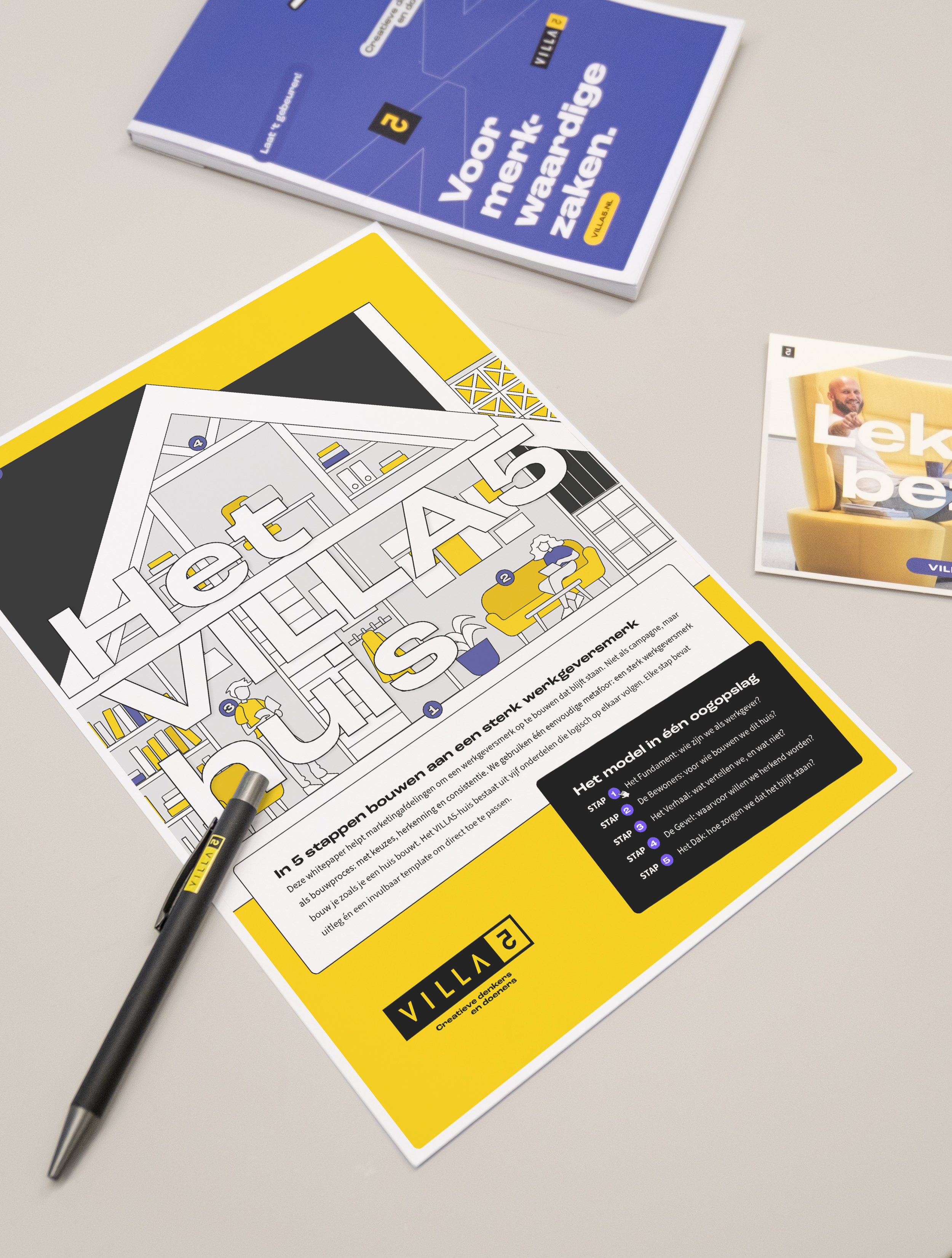 Bij VILLA5 delen we kennis over branding, marketing en communicatie in de breedte. Geen theoretische verhalen, maar praktische whitepapers met concrete voorbeelden, modellen en stappen waar je direct mee aan de slag kunt. Laat je e-mailadres achter en ontvang direct toegang tot de whitepaper die past bij jouw vraagstuk.